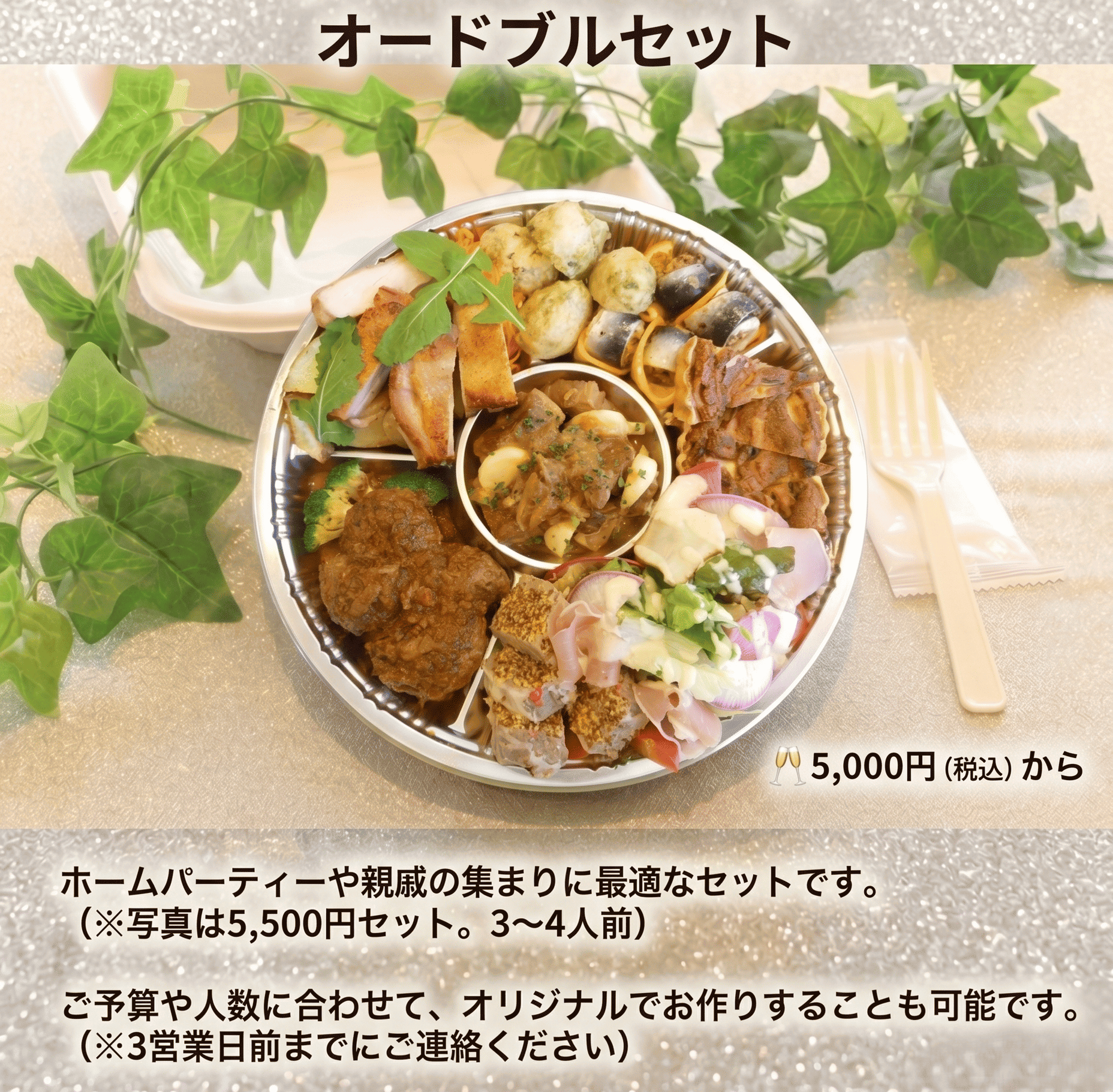 皆様の楽しいご予定にぴったりな「特製テイクアウトメニュー」をご用意しました!